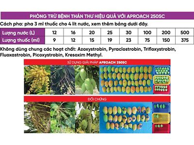 Thuốc trừ bệnh APROACH® 250SC với hoạt chất Picoxystrobin, mới nhất trong nhóm Strobilurins, giúp phòng trừ bệnh Thán thư trên Xoài hiệu quả.