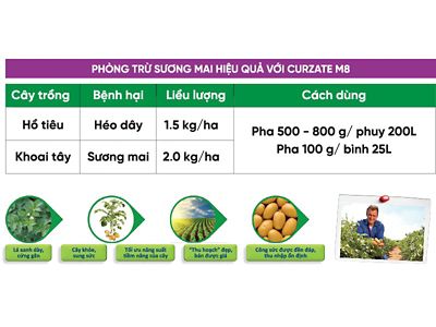 Ngoài ra, với công thức phối trộn độc đáo, Curzate tác động đa điểm, từ đó giúp bảo vệ cây toàn diện. Hơn nữa, Curzate còn kích thích hệ thống miễn dịch của cây, giúp tăng khả năng chống chịu của cây với bệnh hại.