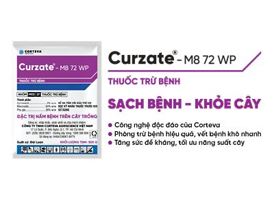 Thuốc trừ bệnh Curzate® M8 72WP với đặc tính loang trải, phủ đều và bảo vệ các bề mặt dễ tiếp xúc nấm bệnh, Curzate thấm sâu, lưu dẫn mạnh & rất dễ sử dụng.